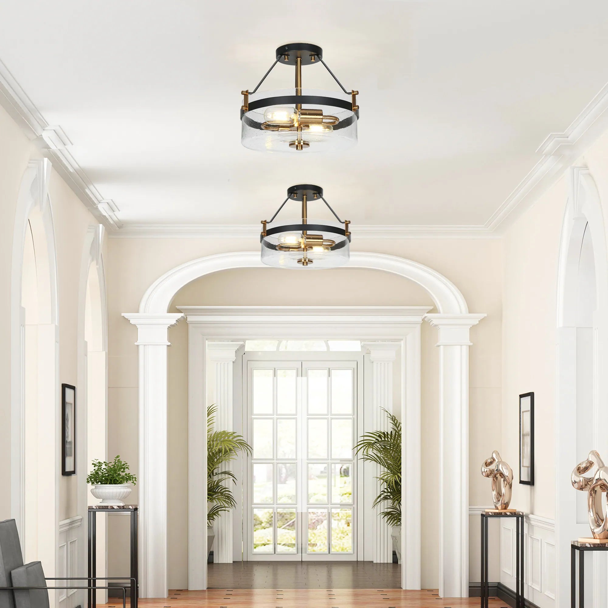 - Semi-Flush Mounts – A bit more flair, hangs slightly down, works well in medium-height foyers.