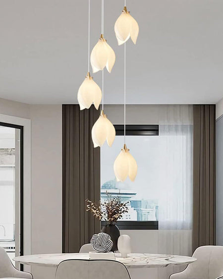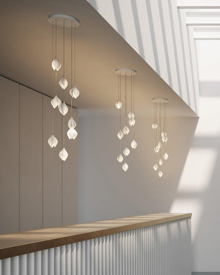 No two romances are alike, nor are these stunning pendants. The pendant evokes a soft and weightless floral form Crafted from hand-formed acrylic “petals” , It features a lovely contemporary style and has an enchanting appearance due to its wavy structure. The soft diffused glow creates the perfect atmosphere and makes the Fleur stand out in a bedroom, entryway, or dining room in a modern or transitional-style setting.This surprisingly lightweight pendant was inspired by childhood memories of picking petals off daisies along with the ageless lovesick refrain. In this case, we do love.
