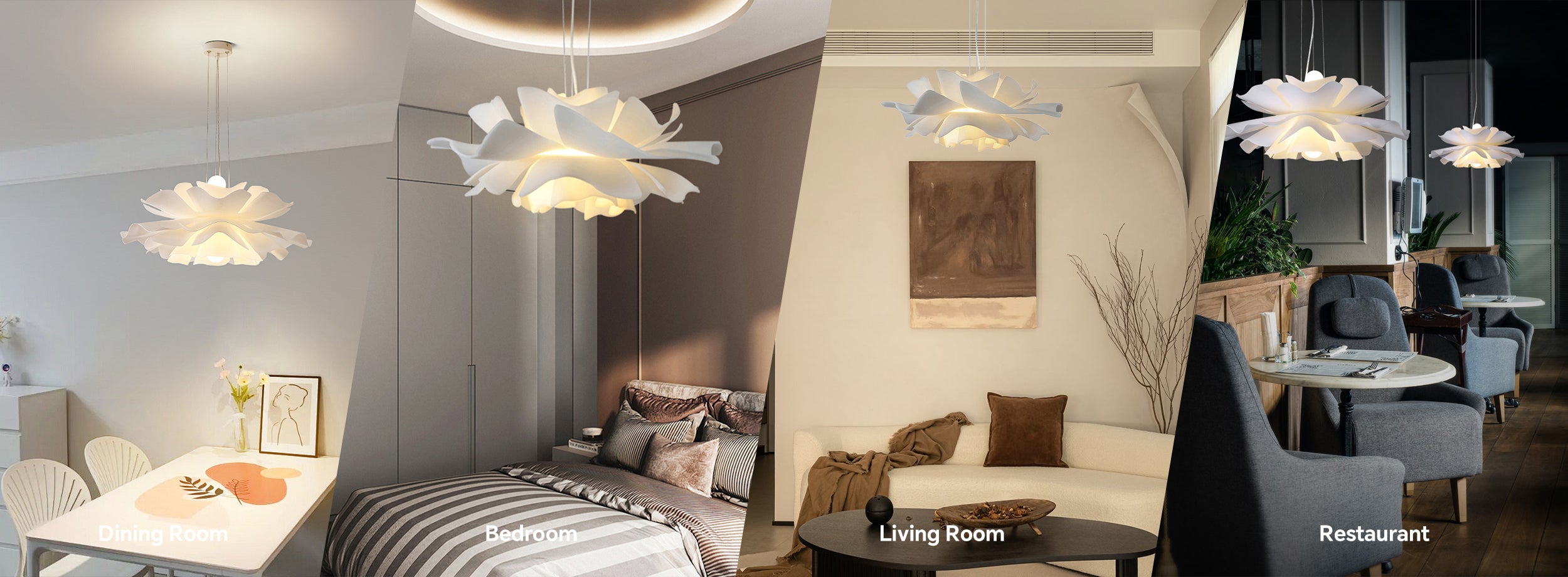 Inspired by blossoming flowers, the natural aesthetics into the modern home, each “petal” are hand-tuned color process, showing gradient light and shadow levels, so that the lamp itself becomes a work of art in the space.